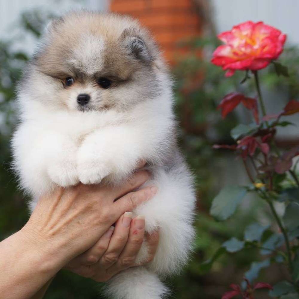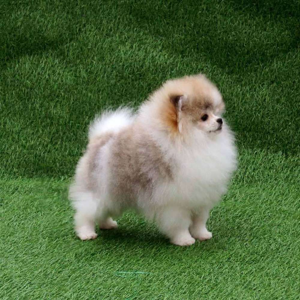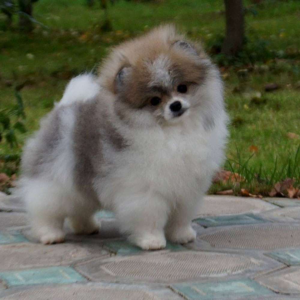 This little male comes to us from Alina Gorlova. He represents a big decision, lots of fretting, help from great friends, and my hopes to add some needed qualities to my parti Pom breeding program.